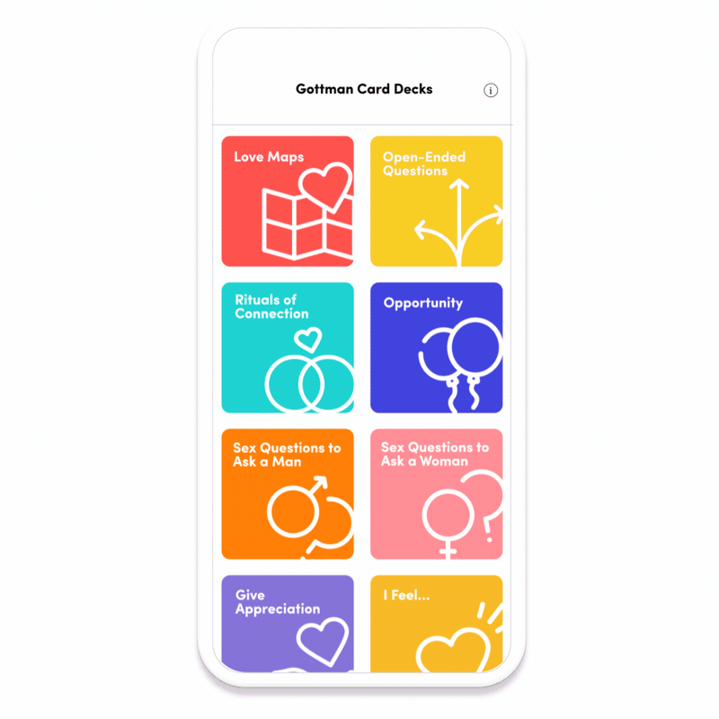 There are 14 card decks with great questions to ask each other about the relationship. It’s recommend that you and your partner use these cards when you are both in the mood for it, rather than when you are too tired or stressed.